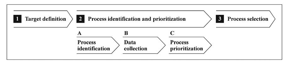 After integrating both the objective lessons learned from the documented cases and the subjective input of the experts, the authors propose an RPA process selection model that follows three phases (as shown in Figure 1 below).